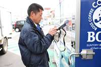 弊社ルート営業担当が定期的に訪問し、商品の補充や詰め替え・売上管理・代金回収・釣り銭補充、空缶の回収、自動販売機の清掃などを行います。